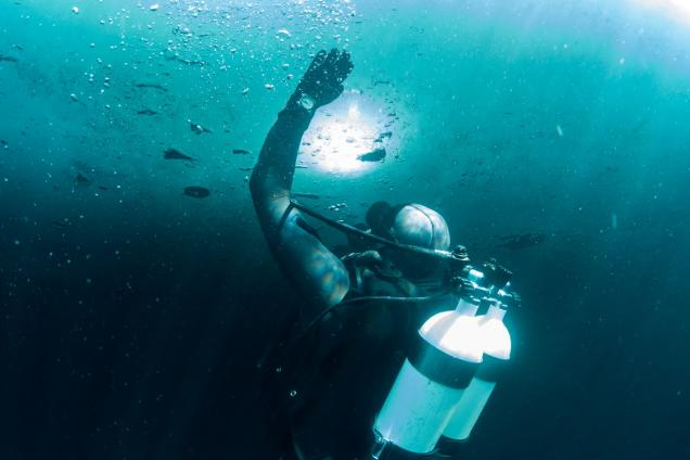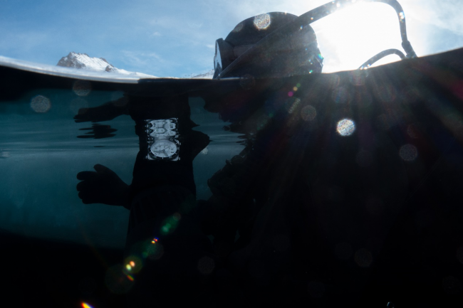 - 金属指针及数字时标经Superluminova夜光物料处理,在黑暗中绽放绿色光芒,在水底黑暗环境阅读时间毫无障碍