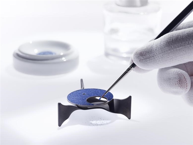 首先将砂金石玻璃原料研磨成粉,为了获得最佳视觉效果,最终完成的粉末也经悉心配比。砂金石玻璃粉末的颗粒须略大于传统的珐琅粉末。 制作这款表盘至少需要涂覆五层砂金石粉末,每一层都必须在超过 800 摄氏度的窑炉中烧制。每次煅烧都必须非常小心地精准掌控:时间过长或温度过高,都会影响最终的成品质量。