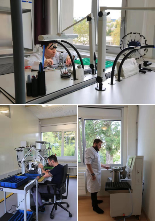 厂房共有两层,第一层为腕表硬件制造区,达到GB50073-2001国际要求和GMP规格的万级净化车间。率先采用计算机数字控制机床进行加工生产(CNC加工),自动化作业覆盖率达84.6%,内设24小时中央温度调节装置,确保车间时刻保持恒定温度。 第二层为腕表手工加工区,员工在该区域内主要负责表体拼装、表面加工与珠宝雕刻。